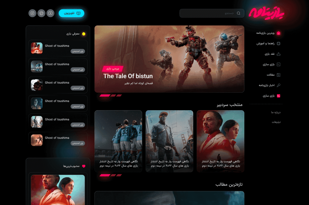 Bazinameh Is An Online Game Magazine Website Which Also Used To Be A Popular Paper Magazine As Well. It Was Developed Based On Wordpress And Without Any Third Party Frameworks To Achieve a Lightweight Theme With Fast Load Speed.